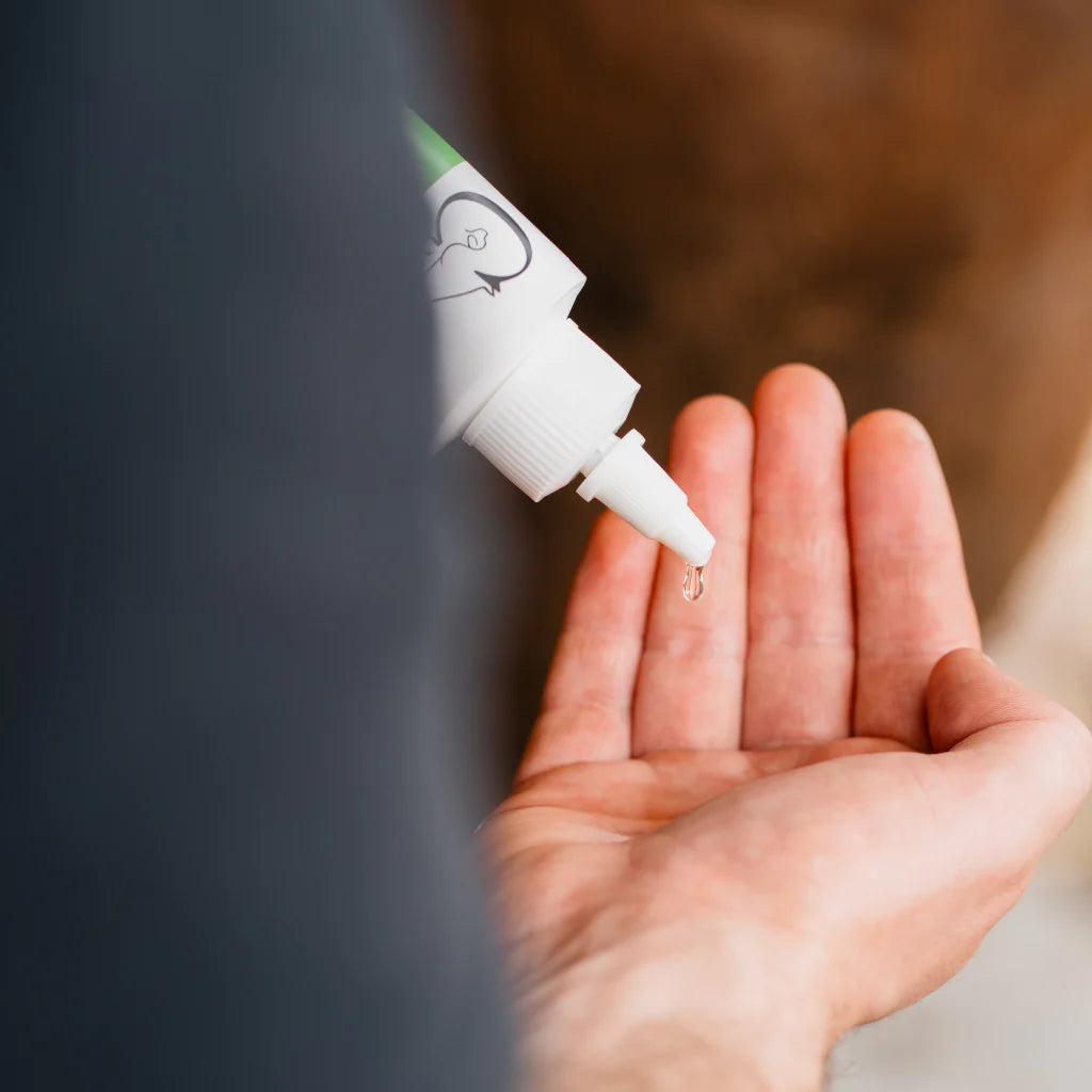 Le bouchon du produit est doté d’un embout applicateur qui permet de mettre le produit directement au contact de la peau, notamment dans les crins : toupet, crinière et base de la queue.