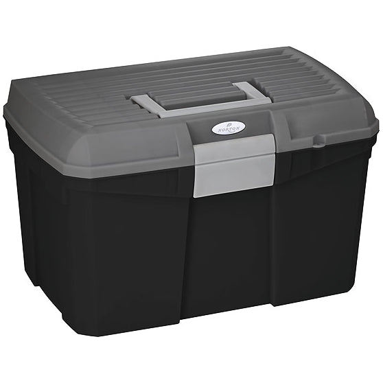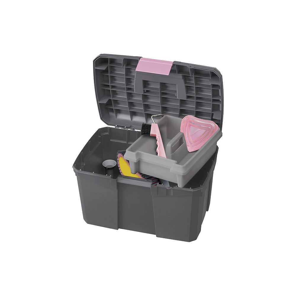 Bicolore, le Coffre de pansage Hippo Tonic est en polypropylène avec un couvercle renforcé pouvant supporter jusqu'à 60 kg.