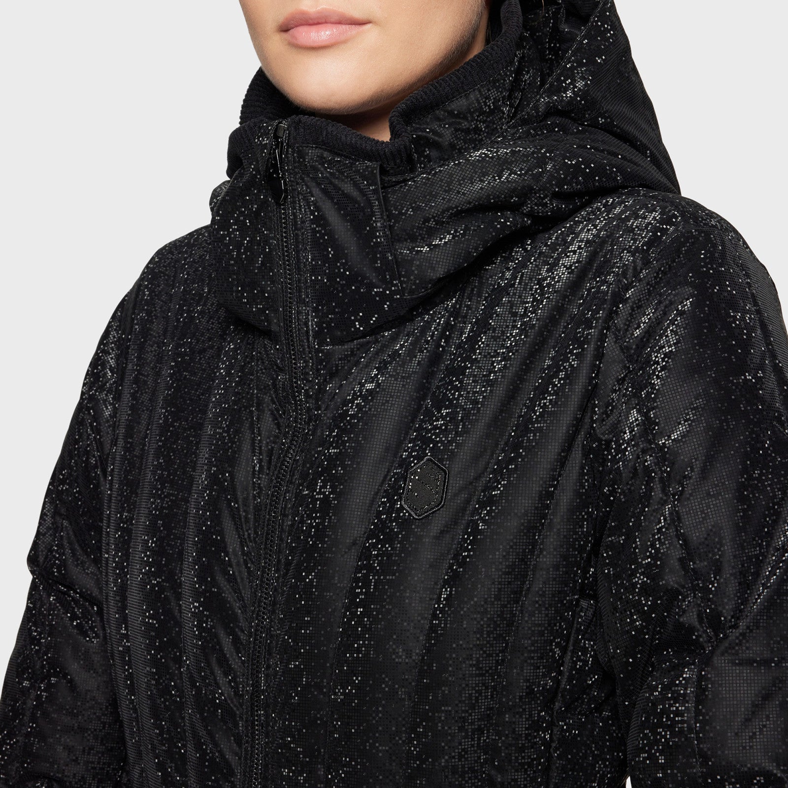 Design à capuche amovible, zip complet et imprimé effet glace Blason Samshield en cristaux Swarovski® sur le devant et logo brodé avec cristaux sur la capuche Double poches invisibles sur le devant, col montant et magnet sur la capucheConception technique