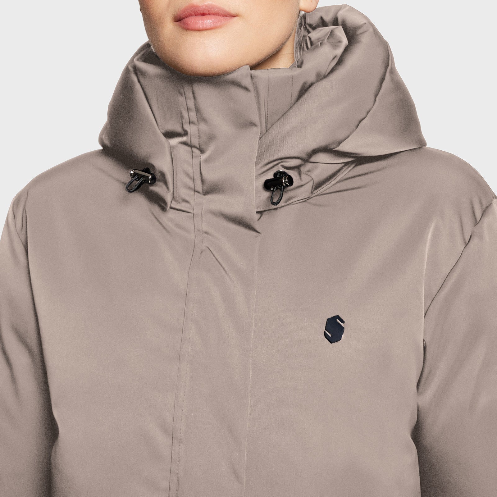 Design long à capuche amovible, zip complet et intérieur de col en velours Blason Samshield chrome noir sur le devant et zip d'ouverture sur les côtés Double poches sur le devant, col montant et poche intérieure sur le torseConception technique